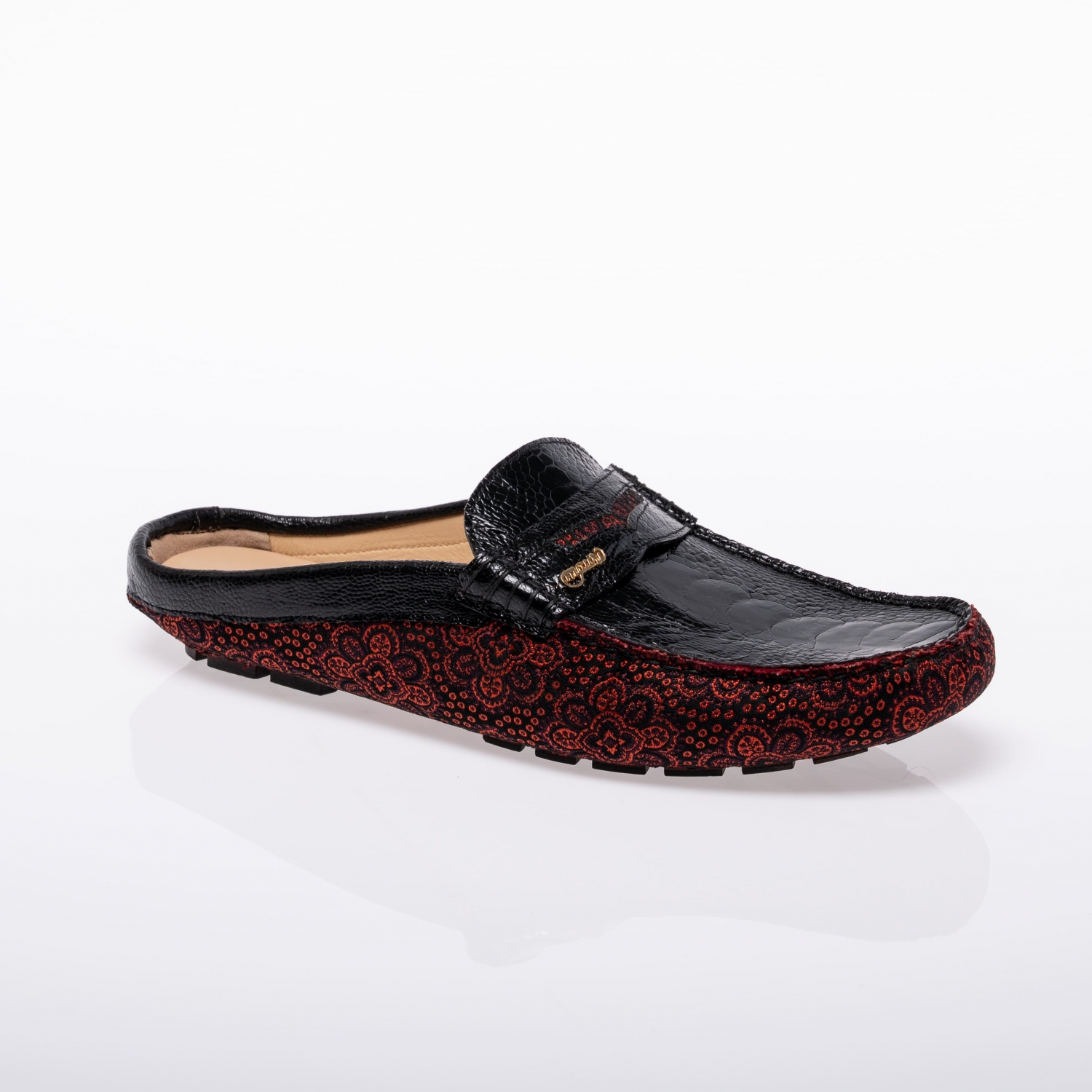ART. 3526 FABRIC MATAHARI BLACK-CORAL & OSTRICH LEG BLACK
